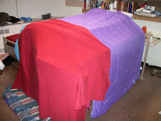 Okay, let me just say, it is pretty impressive how quickly a bad night can turn into the best night you've had in a while. I'm going to skip all the BS and skip straight to the point. James had the brilliant idea of building a fort last night. It was amazing! We were so smart, and we had our engineer, Marley, do most of the construction. We used Dylan's bed frame and mattress, which he will not be very happy with. We laughed until we cried, and just really had a whole lot of fun. So without further adieu, here is the picture proof. They speak a thousand words.